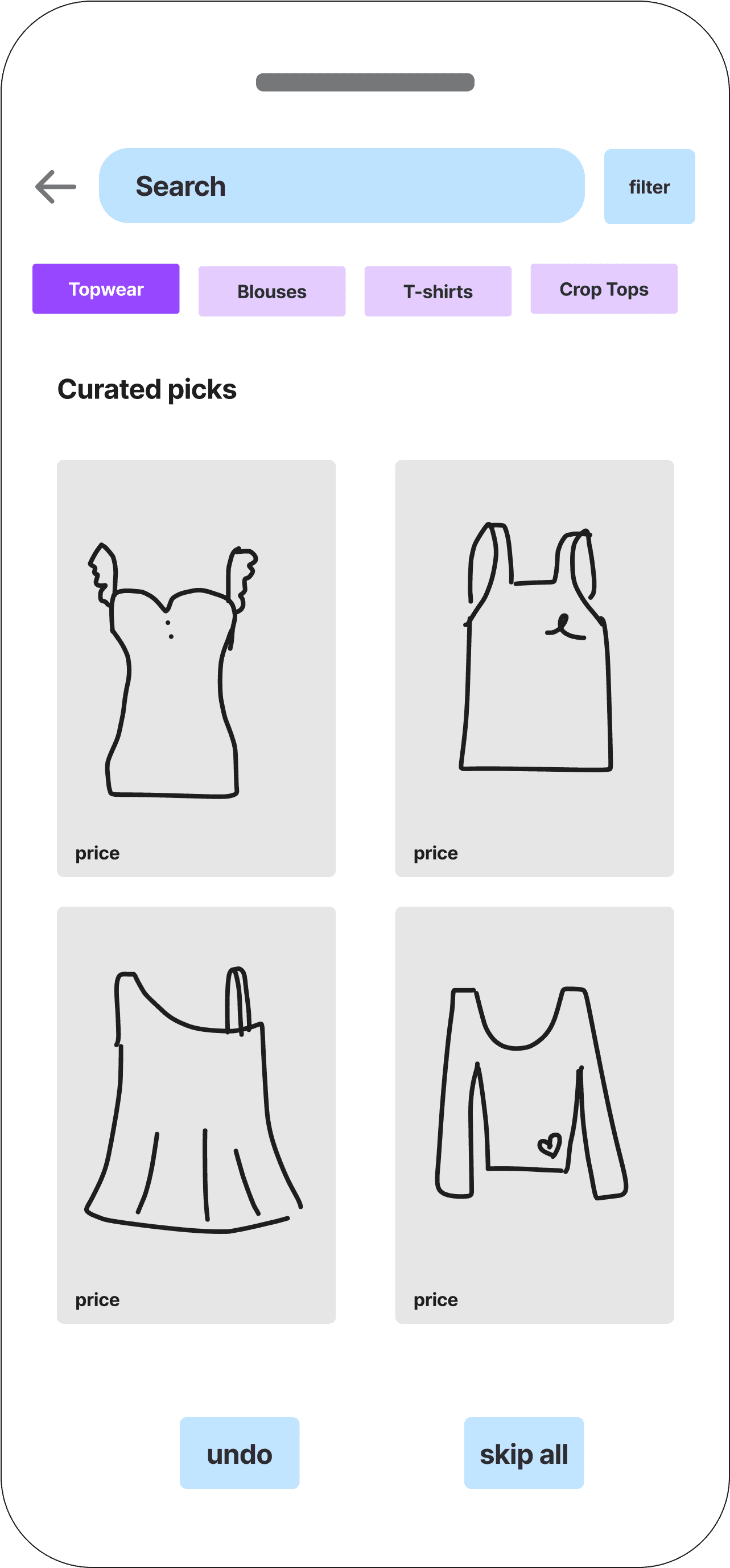 I went to an actual store to observe in-person shopping. And I noticed something: the assistant asked me questions, curated options, helped complete my outfit, and let me decide. That's when it clicked — I needed to replicate that human experience digitally.