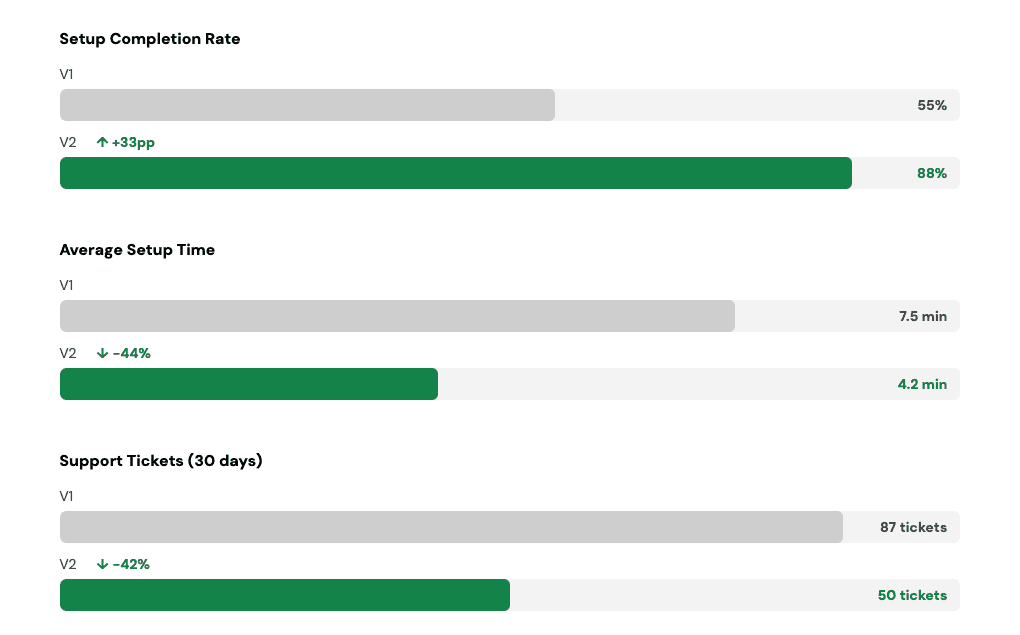 Through usability validation, the new onboarding reduced setup time by 40% and increased successful first-time pairing rates from 55% to 88%.”